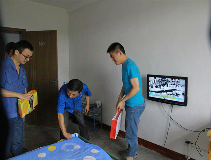 z6mg人生就是博公司黨委副書記、工會主席吳健走訪部分青工宿舍,了解青工宿舍配置情況(陳沐 攝)