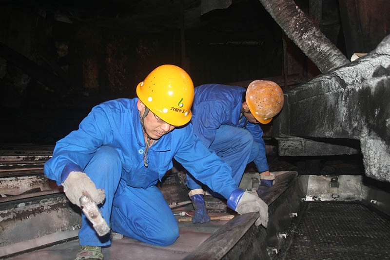 圖二:磷酸車間檢修人員正在清理老系統(tǒng)過濾機(jī)濾盤,更換濾布。今年來,該公司磷礦石品質(zhì)提高,加之阻垢劑的使用,過濾機(jī)開車率、稀磷酸產(chǎn)量較去年提高,過濾機(jī)清理檢修頻次及工人勞動(dòng)強(qiáng)度相應(yīng)下降。