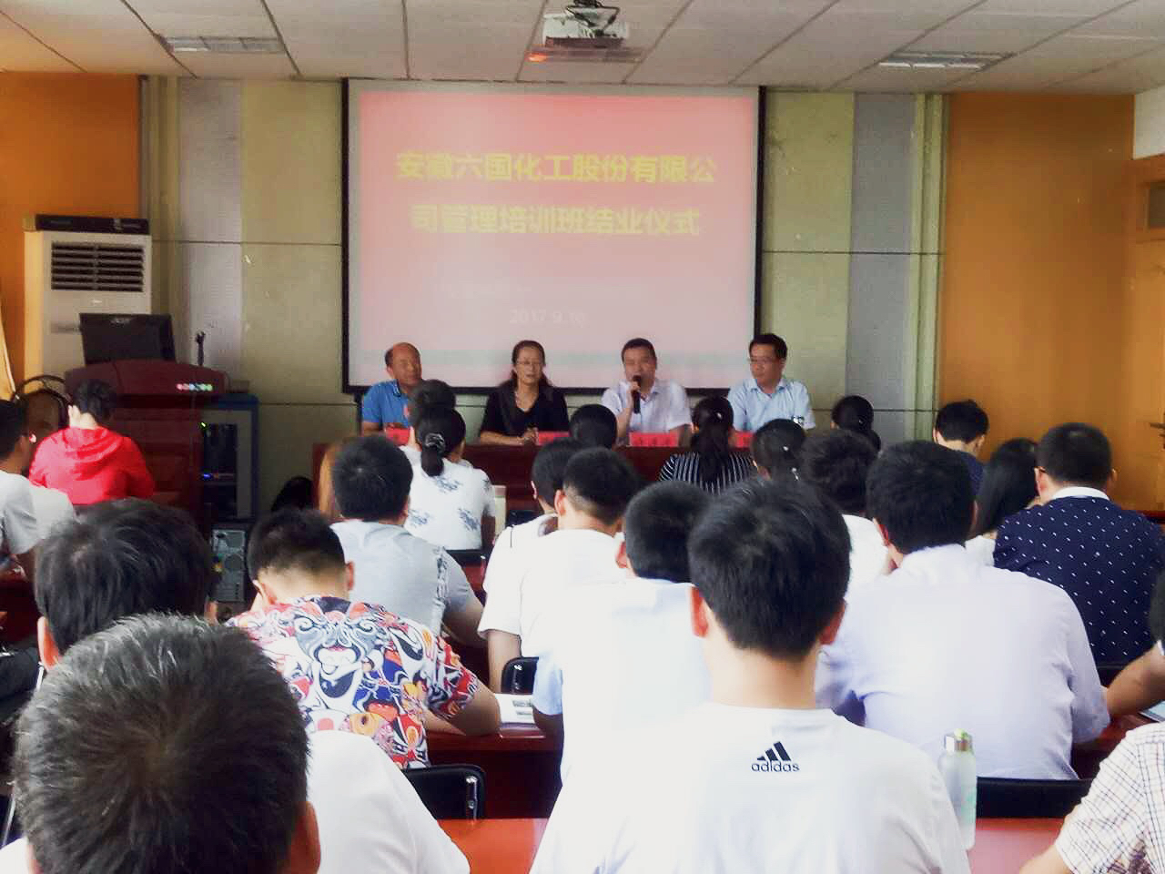 9月16日上午,z6mg人生就是博化工公司中層管理人員培訓班結業儀式,在安徽師范大學經管學院學術報告廳舉行。安師大學經管學院張立新副院長、陳秀慶書記、張延龍教授,z6mg人生就是博公司副總經理許進沖出席結業儀式,分別對培訓情況進行總結,對公司全體參訓人員在校學習和生活表現給予肯定。經管學院領導還為參訓學員頒發結業證書。