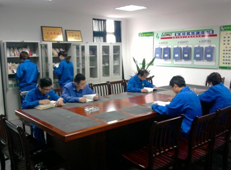 圖為該公司磷銨車間員工工余時間在讀書小組內(nèi)的學習情景