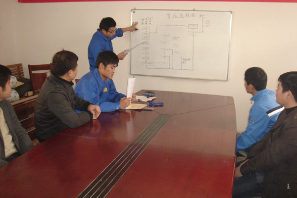 圖1,工藝技術員正在為生產班員工上理論課。
